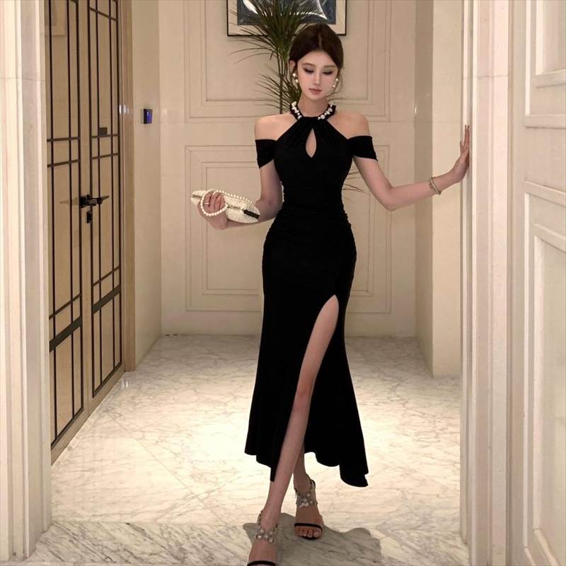 【P2倍&クーポン有】ドレス ワンピース パーティー 発表会 ステージ 舞台 衣装 コスプレ コスチューム ラウンジ クラブ 膝下 ミモレ 半袖 ホルターネック スリム フレア 細身 可愛い きれいめ シンプル カジュアル 大人可愛い おしゃれ キュート ガーリー モード