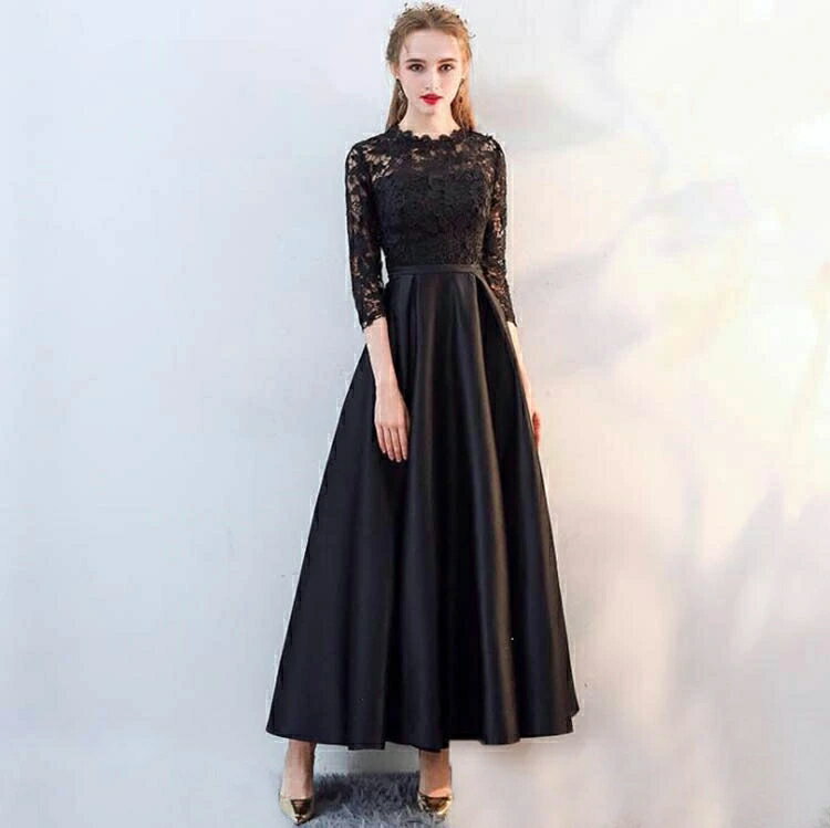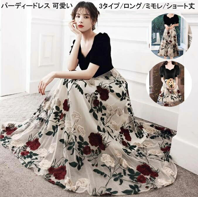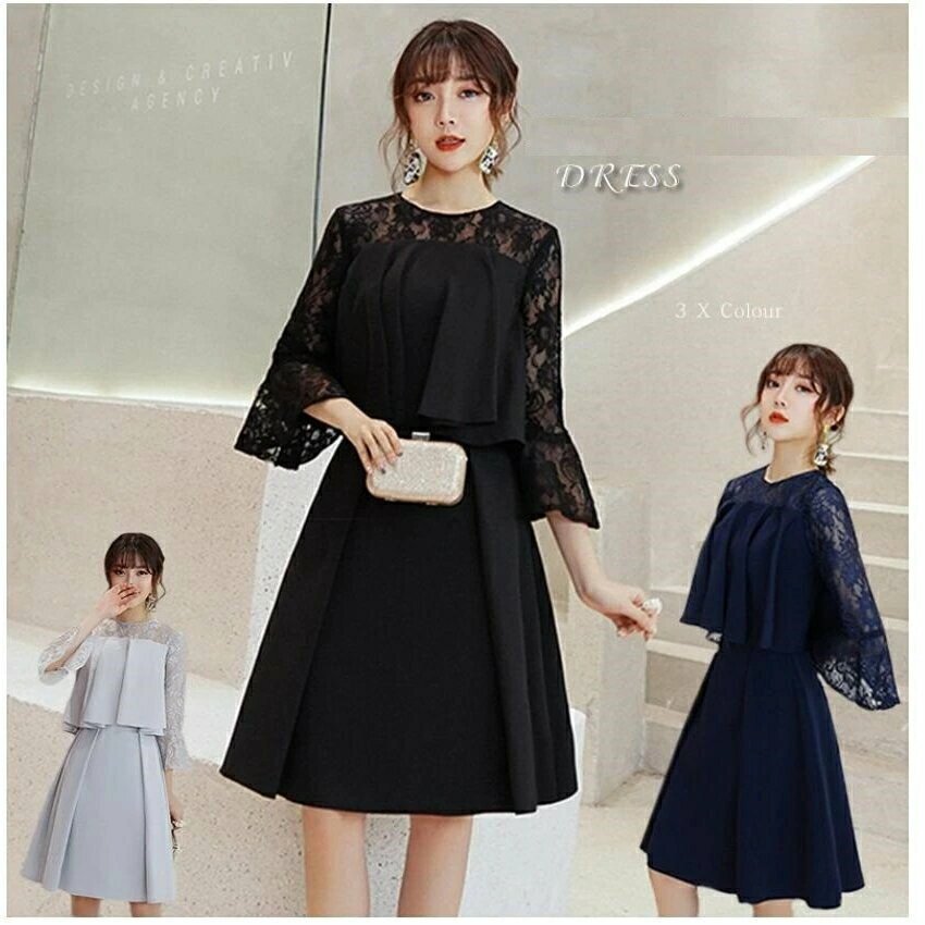 パーティードレス 選べる2丈 結婚式 ワンピース 袖あり きれいめ ドレス フォーマルドレス ロング丈 ミモレ丈 結婚式ドレス 大きいサイズ ウエディングドレス レース 大人 上品 お呼ばれ 二次会 披露宴 黒 春 夏 秋 ロングドレス マキシ エレガント 送料無料