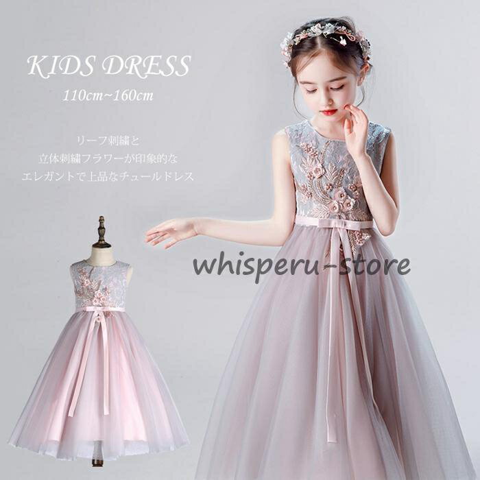 子供ドレス ピアノ発表会 ドレス チュールドレス 花柄 刺繍 女の子ドレス 結婚式 演奏会 子供 キッズ 110 120 130 140 150 160