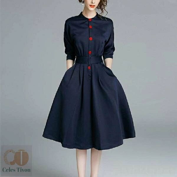 新生活 気楽 赤ボタン ワンピース ドレス ひざ丈 レディース 演奏会 謝恩会 フォーマル 披露宴 パーティードレス 着痩せ 衣装 ミモレ丈 ドレス 膝丈 上品 エレガント きれい 可愛い