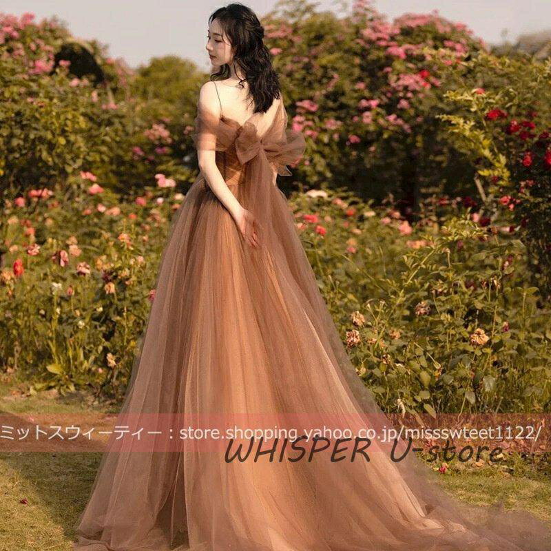 カラードレス カクテルドレス ブラウン ファスナー ロングドレス パーティードレス ウエディングドレス 発表会 演奏会 ステージドレス 二次会 コンクール 茶色