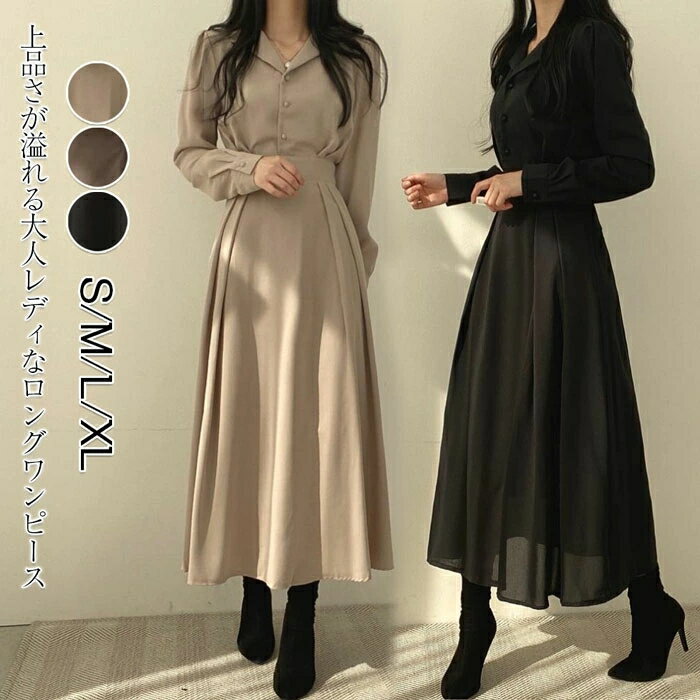 ワンピース レディース きれいめ 長袖 ワンピース 春 秋 フォーマルワンピース レディース ロング 長袖 おしゃれ エレガント きれいめ 無地 シンプル Vネック お呼ばれ 袖あり 薄手 パーティー フロントボタン 20代 30代 40代 S〜XL