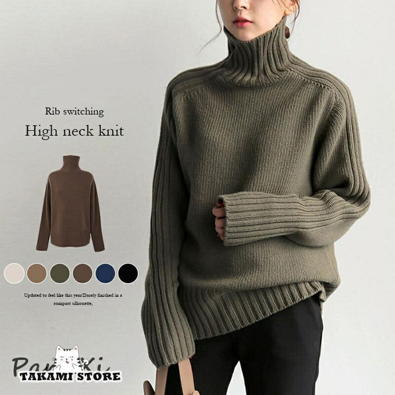 ニット セーター レディース トップス 秋冬 長袖 ハイネック タートルネック シンプル カジュアル デート おしゃれ キレイめ 可愛い ゆったり 通勤