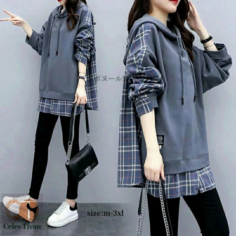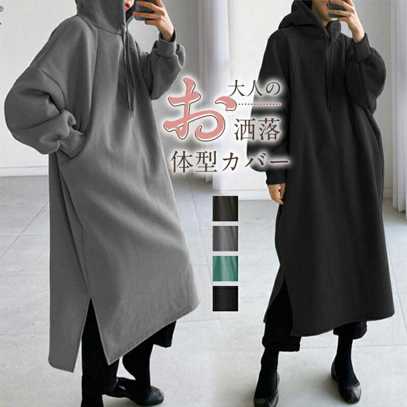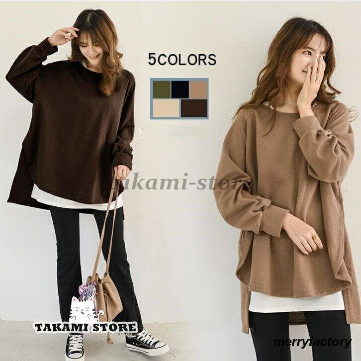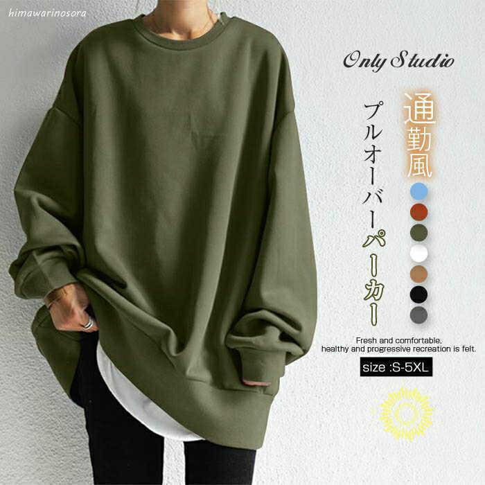 パーカー シャツ ブラウス レディース プルオーバー トップス 長袖 ラウンドネック 着痩せ 秋 冬 体型カバー カジュアル シンプル ゆったり アウター 大きいサイ