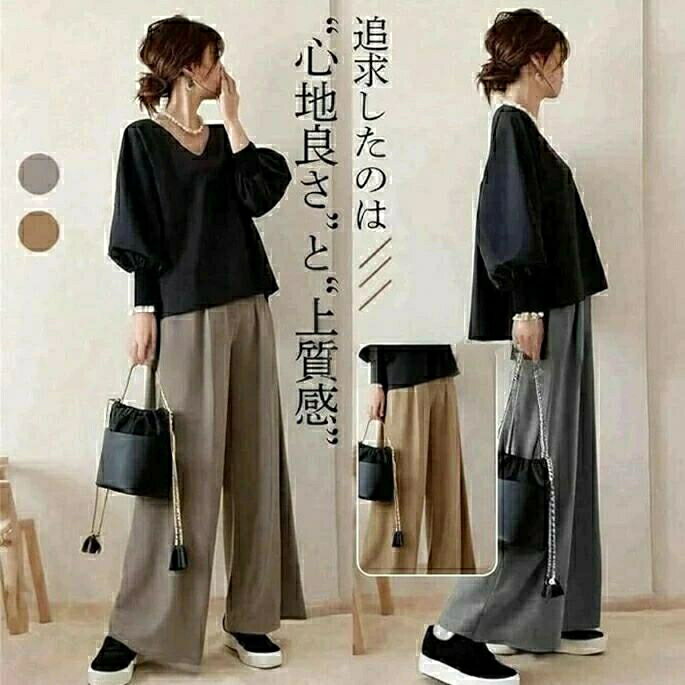 セットアップ レディース きれいめ カジュアル 春 秋 トップス ワイドパンツ 長袖 パンツ 上下2点セット Vネック 秋服 ロングパンツ ゆったり 大きいサイズ 低身長 大人 可愛い 体型カバー 無地 着痩せ おしゃれ 細見え 日常着 30代 40代 50代