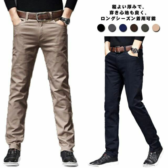 送料無料 チノパンツ メンズ スラックス ストレッチ チノパン ビジネス ストレート ゆったり オールシーズン 秋 冬 春 綿パン 綿100% 厚手 カジュアル パンツ リラックス 防寒 保温 黒 ネイビー 紺 ベージュ 大きいサイズ 長ズボン ボトムス ロング