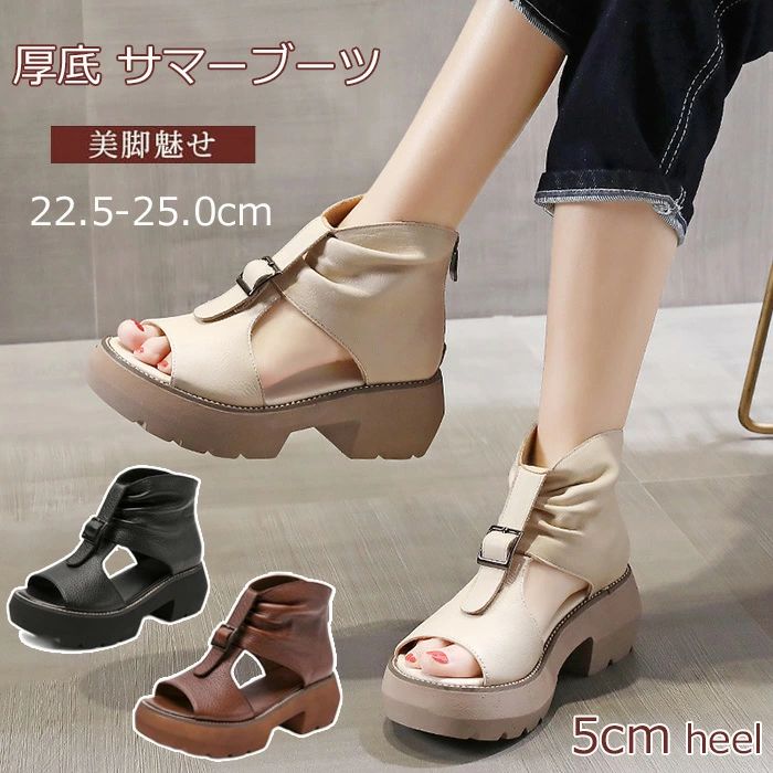 サマーブーツ ブーツサンダル レディース サマーブーツ ウェッジソール 靴 ショートブーツ 黒 ブラウン フラットシューズ ヒール ブーツサンダル 歩きやすい 厚底シューズ ペタンコ ウエッジソール 厚底サンダル 春夏