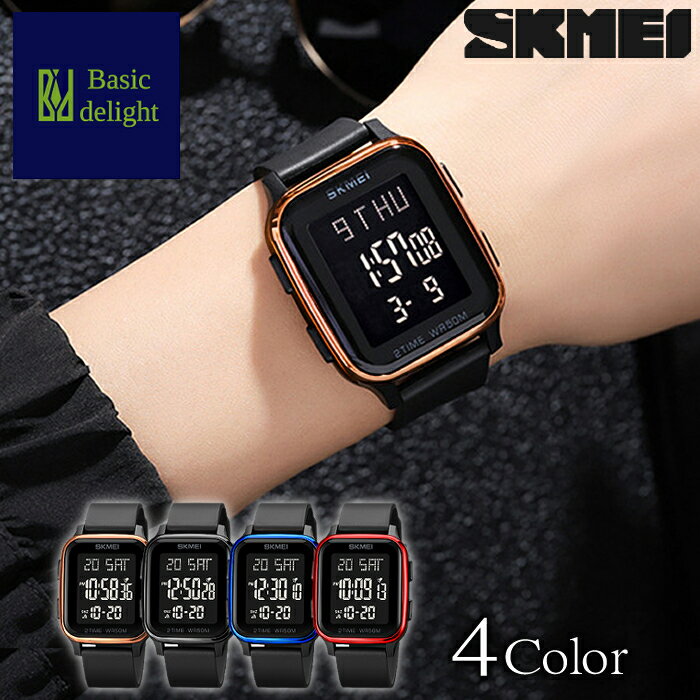 【スーマトなスクエア型】 腕時計 時計 リストウォッチ SKMEI スクメイ デジタル デジタルウォッチ スクエア 四角 バックライト 光る 防水 50M防水 5気圧防水 デュアルタイム ストップウォッチ アラーム カレンダー 12/24表示 プレゼント 贈り物