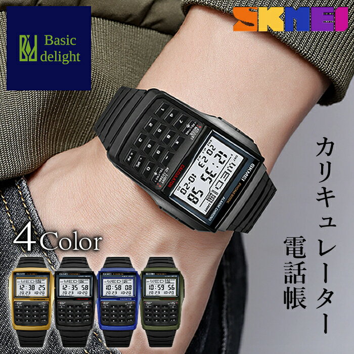 【カリキュレーター】 腕時計 時計 リストウォッチ SKMEI スクメイ 電卓 計算機 電話帳 テレメモ レトロ フューチャー 近未来 デジタル デジタルウォッチ バックライト デュアルタイム ストップウォッチ アラーム カレンダー 12/24表示 プレゼント 贈り物