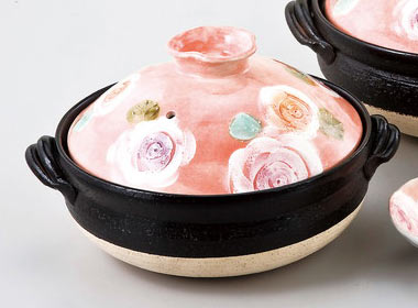 【直送品】彩バラ化粧 8号土鍋 93165 舞陶館 BUTOUKAN【ヘルシ価格】キッチン用品 調理器具 鍋 土鍋