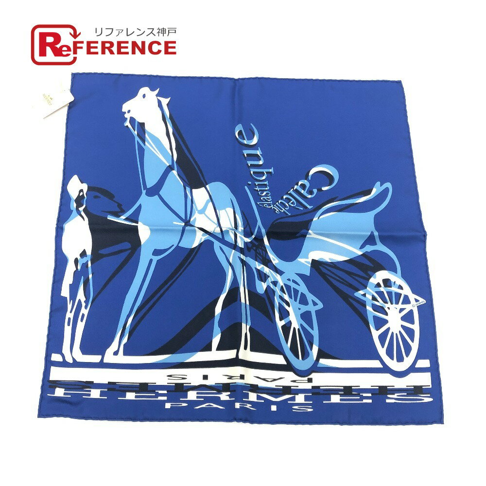 HERMES エルメス カレ40 CALECHE ELASTIQUE カレーシュ エラスティック ファッション小物 スカーフ シルク レディース ブルー 未使用 【中古】