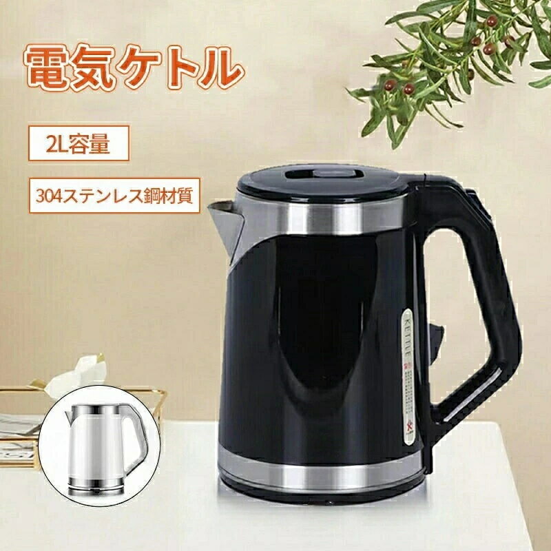 電気ケトル デザインケトル ポット 湯沸かし器 空だき防止機能 電気ポット 湯沸かし ケトル 温度調節付 ブラック 2L 湯沸かしポット 304ステンレス鋼 自然保温力 自動電源OFF おしゃれ