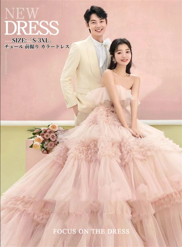 【送料無料】ウェディングドレス オフショルダー 高級感 多重チュール ふわふわスカート 韓国風 カラードレス お姫様 ブルー結婚式 前撮り 誕生日 花嫁ドレス 演奏会ドレス ピアノ ロングドレス きれいめ パーティードレス 二次会 披露宴 ワンピース フォトウェディング 撮影
