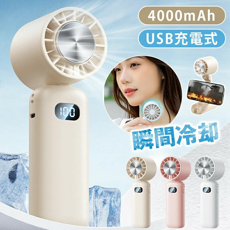ハンディファン 冷却プレート 半導体冷凍チップ 瞬間冷感 携帯扇風機 4000mAh大容量 5段階風量 LED残量表示 1台4役 折り畳み式 卓上扇風機 小型扇風機 usb充電式 軽量 扇風機 小型 手持ち扇風機 スマホスタンド 暑さ対策グッズ 静音 母の日 贈り物