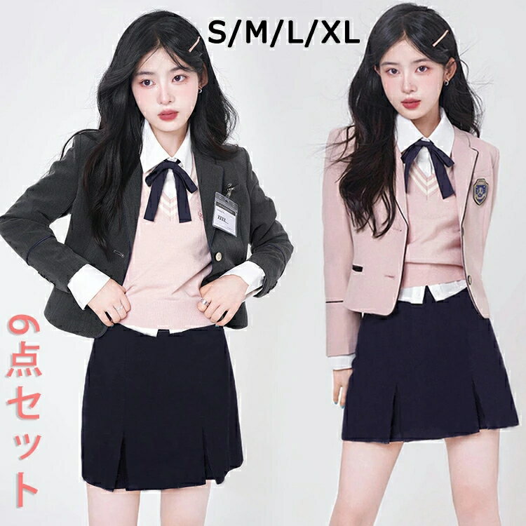 卒業式 入学式 スーツ 女の子 6点セット 150 160 165 170 韓国 制服 卒服 制服 ブレザー 女子 上下 入学式 高校生 中学生 卒服 女の子 スクール ブレザー 制服 黒 ブレザー ブラウス ベスト スカート ワッペン リボン S M L XL 2XL