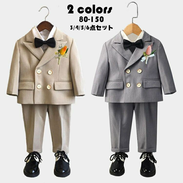韓国子供服 子供スーツ 男の子 ベビー 男児タキシード 4点セット お祝い 入園式 入学式 発表会 結婚式 3色選べる 誕生日のスーツ 80 90 100 110 120 130cm