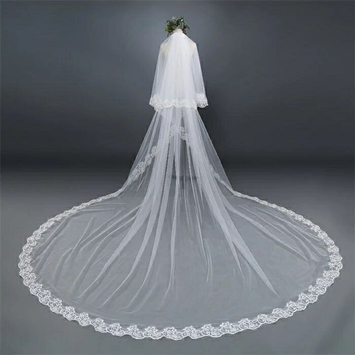 ウェディングベール ロング 2層タイプ ロングベール 3m ヴェール ホワイト 結婚式 花嫁 カチューシャ ベールダウン ドレス用 ロング丈 金属コーム付き レース刺繍 儀式 ベールUP 二次会 撮影 大きい 上品 披露宴 豪華 おしゃれ