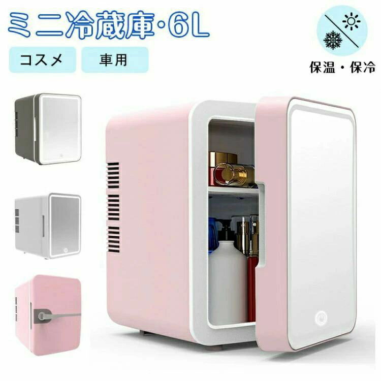 美容 メイク ミニ三段階調光 低騒音 化粧品冷蔵庫省エネ 卓上 ポータブル 室内車載両用冷温庫 LED化粧鏡付き 小型 6L ミニ冷蔵庫