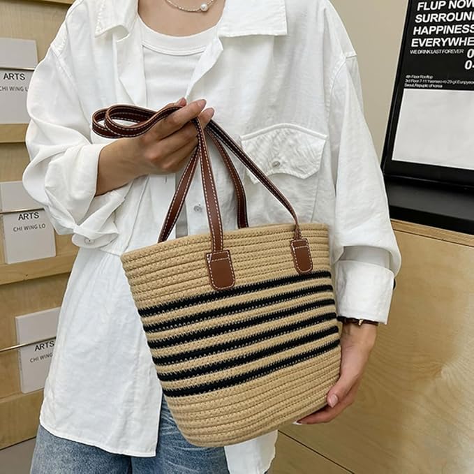 女性用ストローハンドバッグ フラワーレースかぎ針編みトートバッグ 織りストローバッグ クロスボディバッグ 女性用