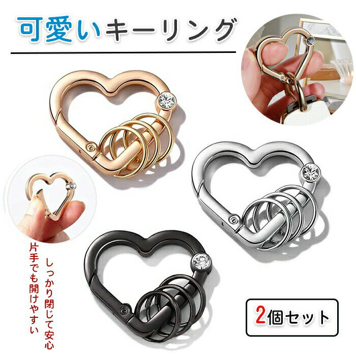 【2個セット】 開閉式 ハート型 カラビナ ハート キーホルダー 金 銀 黒 小型 おしゃれ 可愛い キラキラ キーリング 小さい リング 韓国 レディース 女性 女子 女の子 アクセサリー