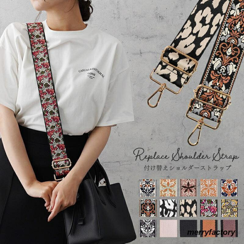 シンプル ストラップ メンズ 刺繍 肩掛け ベルト 送料無料 幅広 太め ショルダーストラップ 無地 バッグ 紐 小物 かばん アジャスター付き 長さ調節可能 エスニック モード かわいい ショルダーバッグ