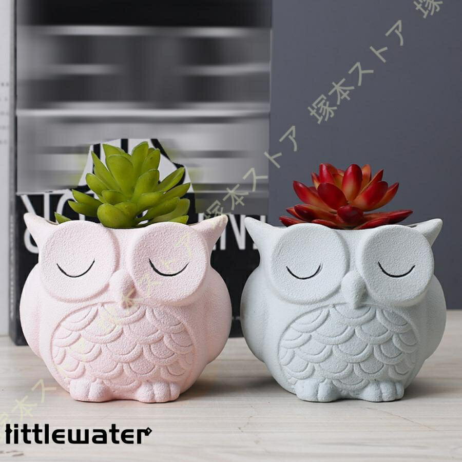 フクロウ 陶器 植木鉢 多肉植物 寄せ植え ガーデニングオブジェ 鉢植え かわいい おしゃれ フクロウ プランター サボテン 多肉植物 寄せ植え 小フクロウ