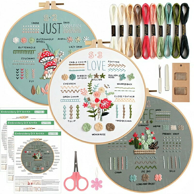 ★楽天1位★刺繍 キット 初心者 生地 ワッペン ハンカチ シャツ 刺繍練習用ステッチセット 刺繍セット 初心者 刺繍布 刺繍枠 刺糸キット スターターキット 手芸キット 手芸セット ハンドメイド かわいい クロスステッチ おうち時間 手仕事 プレゼント