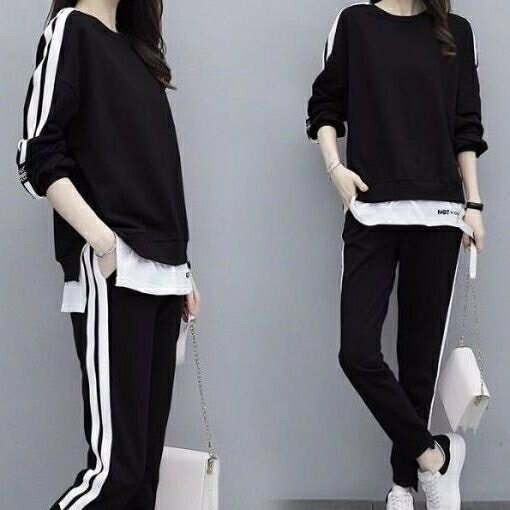 全3色 セットアップ 上下セット スポーティー レディース 重ね着風 長袖 長パンツ 大きいサイズ ジャージ フィットネスウェア 部屋着 ルームウェア 2点セット スウェット パンツスポーツ