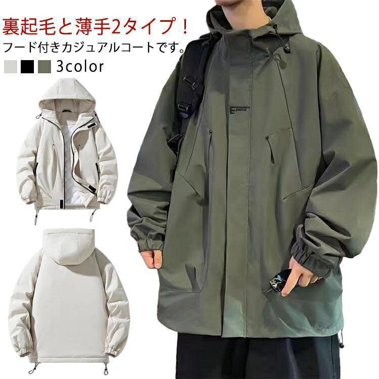 中綿ジャケット フード付き 厚手 マウンテンパーカー 裏起毛 ダウンジャケット メンズ アウター ウインドブレーカー ブルゾン アウトドア 撥水 防風