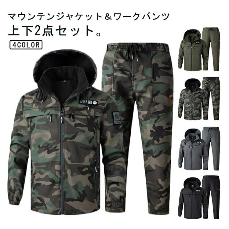 厚手 釣り 防寒 スポーツ ジャケット 撥水 防寒 メンズ ウインドブレーカー マウンテンジャケット カジュアル ミリタリー 防風 ワークパンツ 作業用 自転車 裏起毛 登山 マウンテンジャケット キャンプ ランニング 上下セット 撥水