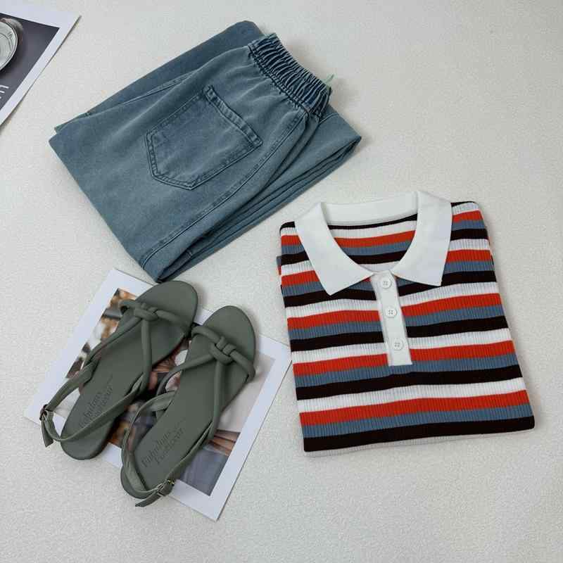 ニット レディース ポロシャツ 再生繊維 シルク混紡 コットン 切り替え ボーダー柄 伸縮性 半袖 上品 きれいめ