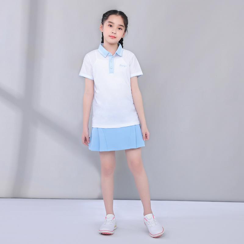 ゴルフウェア キッズ 子供用 半袖 ポロシャツ 襟付き Tシャツ トップス スポーツウェア 通気性