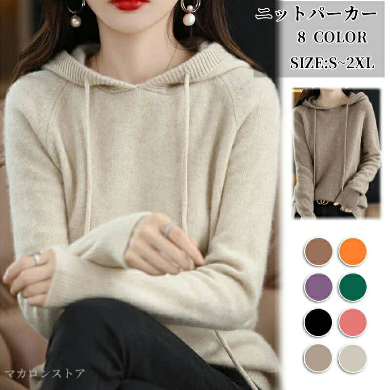 パーカー レディース おしゃれ ニットパーカー レディース 長袖 秋冬パーカー ニット スウェット フード 暖かい フリース パーカー カジュアル シンプル スポーティー 韓国 無地 着回し 秋冬 大きいサイズ 大人 選べる8色 重ね着 S-XXL