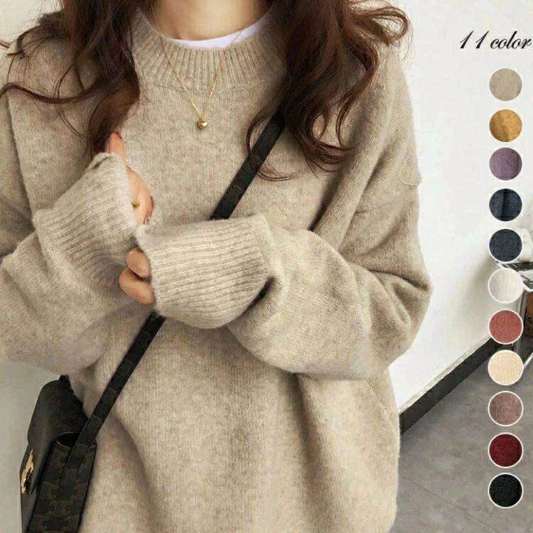 ミックスカラーオーバー ニット オーバーサイズ レディース もちもち 暖か ざっくり 秋冬 トップス