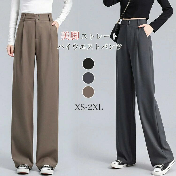 【早い者勝ち★先着10名:300円Offクーポン】ワイドパンツ スーツパンツ レディース 春 秋 ハイウエスト ワイドレッグ フロアレングス パンツ OL 大人 通勤 オフィス ビジネス 韓 カジュアル きれいめ シンプル