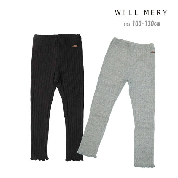 ★SALE(セール)★レギンス ウィルメリー N65007 起毛テレコレギンス キッズ 子供服 女の子 ボトムス 長パンツ パンツ リブ 冬用 あったかパンツ 110 120 130 楽ちん のびのび 無地 ウエストゴム グレー ブラック 100cm 110cm 120cm 130cm