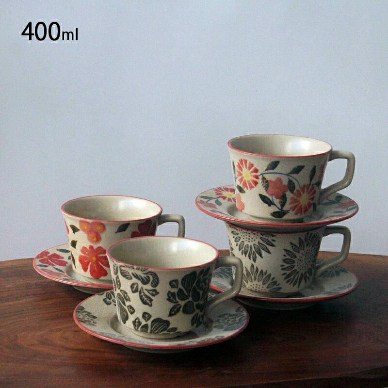【送料無料】カップ&ソーサー コーヒー碗皿 400ml ティー・コーヒーカップ デザートカップ マグカップ スプーン付き お茶 紅茶カップ 陶器 食器セット 和風 おしゃれ カフェ風 結婚祝い ギフト 誕生日 女性 プレゼント 新生活 喫茶店 レストラン 食洗機対応 coffee cup