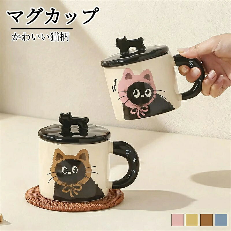 マグカップ 北欧 おしゃれ 猫柄 フタ付き 取っ手付き ハンドメイド 朝食カップ ティーカップ 大容量 茶碗 コップ カフェマグ 朝食カップ キッチン雑貨 洋食器 和食器 磁器 コーヒーカップ 大きい 陶器