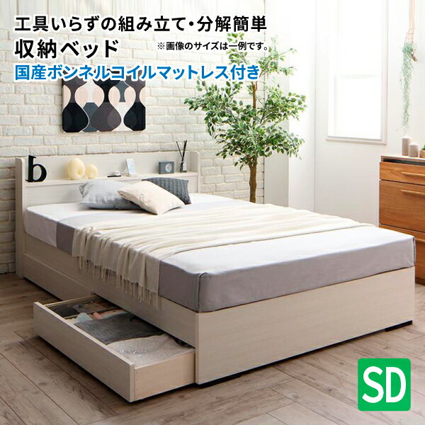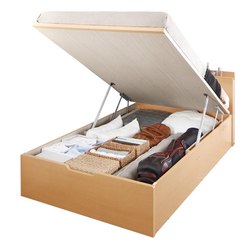 跳ね上げ式ベッド ( セミダブル 日本製 跳ね上げベッド ナチュラル 薄型スタンダードボンネルコイルマットレス付き 縦開き 深さラージ ) 収納ベッド ガス圧 セミダブルベッド (Renati-NA レナーチ) 送料無料