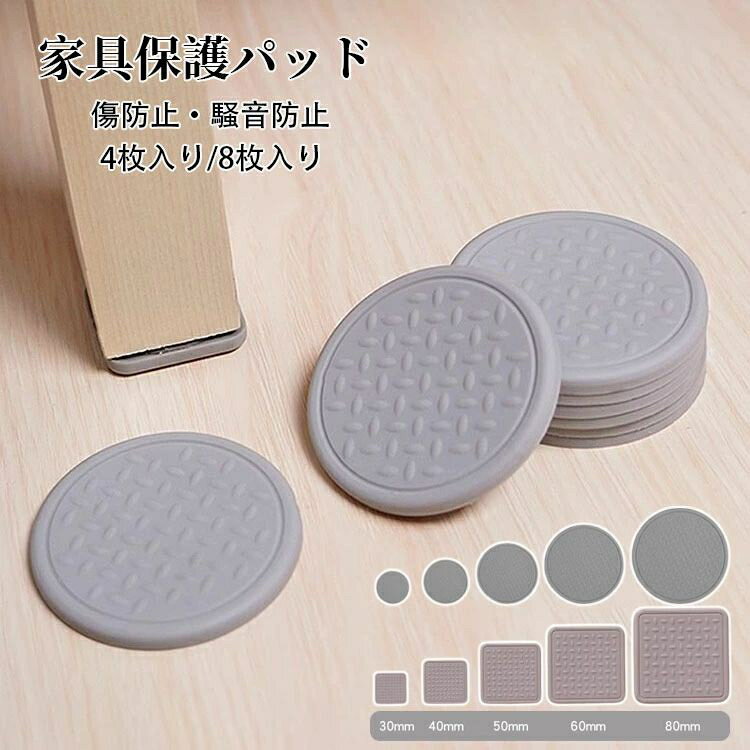 家具保護パッド キズ防止 へこみ防止 パッド 床保護マット 柔らかシリコン素材 カット可能 椅子脚キャップ 丸脚/角脚対応 イス テーブル 床傷防止 騒音防止 滑りにくい フローリング パッド 防音シート 椅子脚カバー ソファー 取り付け簡単 選べる2色