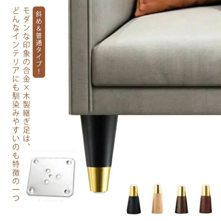 2タイプ!合金+木デザイン ベッド 継ぎ足し 脚 継ぎ足 継ぎ脚 机 高さ調整 4本セット 木製 交換可能 テーブル かさ上げ台 ソファー 足の交換用 木脚 家具パーツ 家具脚 サポート脚 おしゃれ モダン