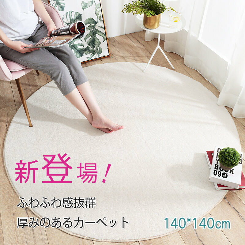 お買い物マラソン【P5倍】カシミヤのような丸いカーペット 直径100cm 円形 丸い カーペット 出窓 ロングパイル フロアマット プレイマット リビング 居間 フローリングマット マット 椅子下 デスク下 新生活