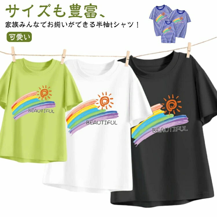 レーンボー 親子ペアルック 男の子 夏 半袖 ペアtシャツ コーデ パパ 兄弟 姉妹 プレゼント 父の日 女の子 親子コーデ お揃い こどもの日 tシャツ 母の日 おそろい ママ 3人 親子 家族おそろい 大人 子供 家族写真 リンク