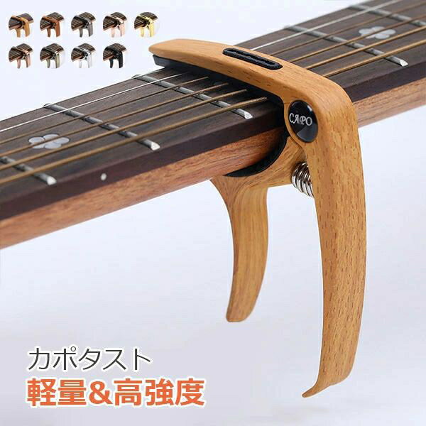 多機能 ワンタッチ式 ギターカポタスト 軽量設計 アコギ/エレキ/クラシックギター/ウクレレ対応 強力グリップ シリコン保護 ピック2枚&ファイバークロス付き メール便