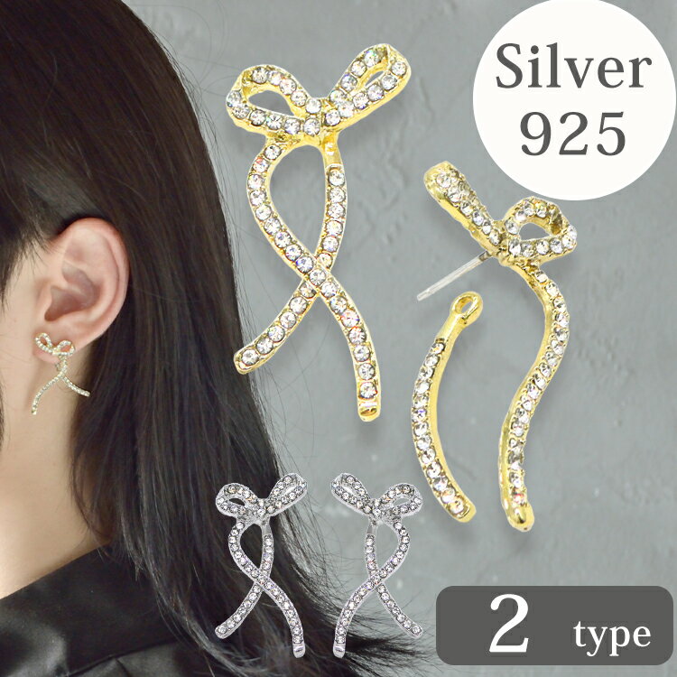 ピアス リボン 247VENUS 247ヴィーナス ノットピアス 韓国 金属アレルギー 316L キュービックジルコニア メンズ シルバーアクセサリー ボウノットピアス