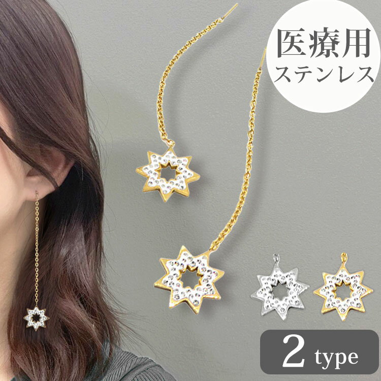 ピアス 雪 結晶 スノーフレーク 金属アレルギー チェーン チェーンピアス アメリカンピアス ステンレス セカンドピアス 韓国 316L キュービックジルコニア スノーフレークチェーンピアス
