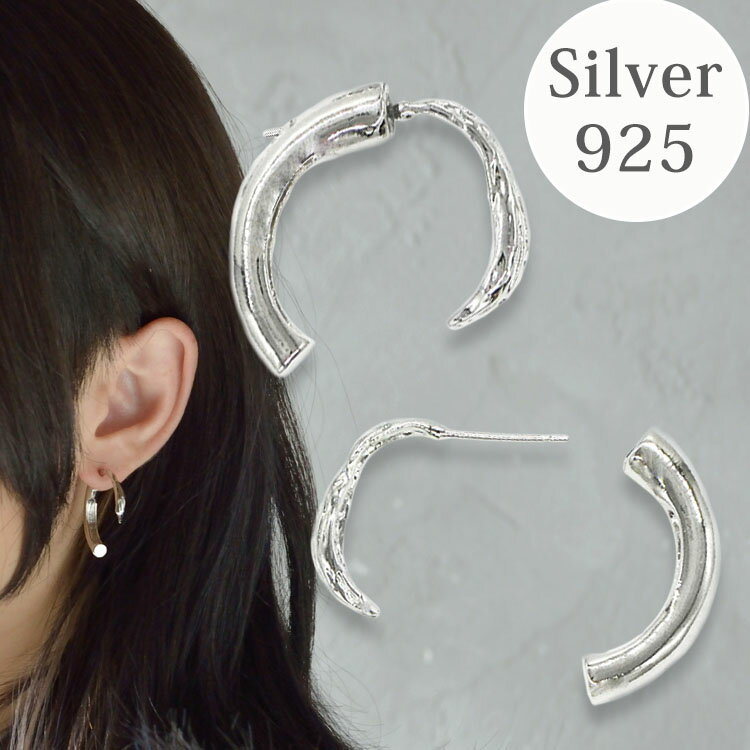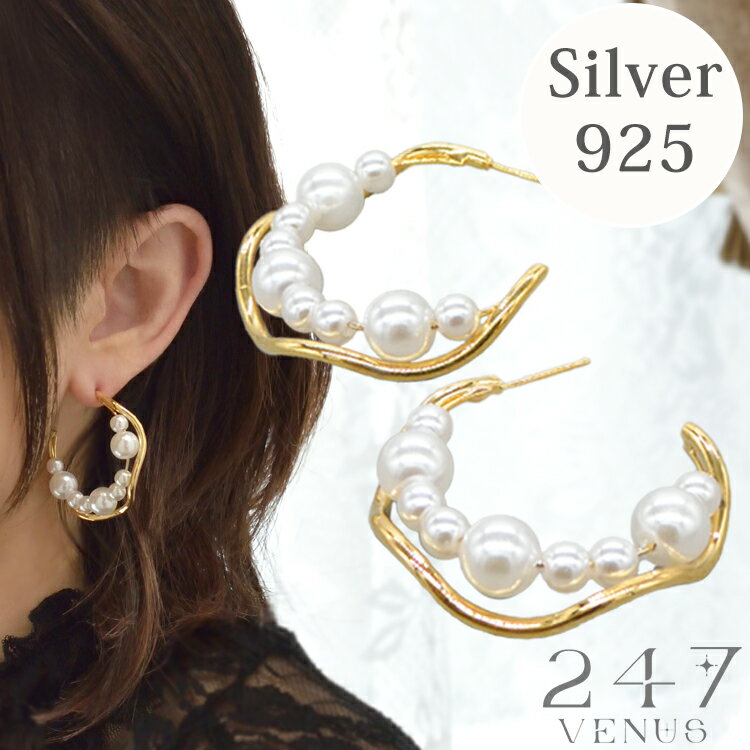 ピアス パール 金属アレルギー フープ アクセサリー 大ぶり シルバー 925 キュービックジルコニア ピアス メンズ シルバーアクセサリー パールウェーブフープピアス※左右非対称