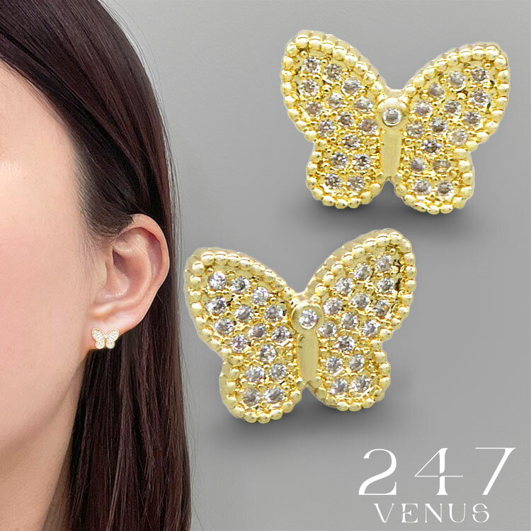 ピアス 18金 247VENUS 247ヴィーナス ピアス 金属アレルギー 蝶 バタフライ アゲハ蝶 韓国 アクセサリー レディースキュービックジルコニア 18K パピヨンパヴェピアス