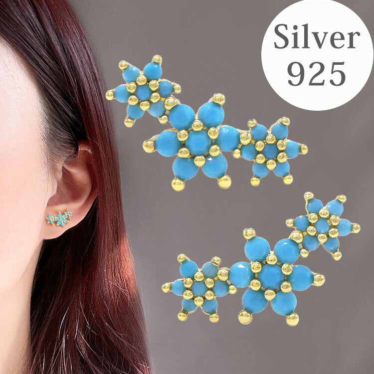 ピアス ターコイズ 金属アレルギー 誕生石 花 シルバー925 ポスト SV925 シルバーアクセサリー ターコイズフラワーピアス