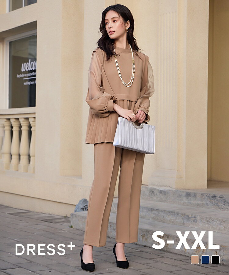 セットアップ 大きいサイズ パーティードレス パンツドレス 結婚式 ペプラムブラウス クロップドパンツ プリーツ裾 パーティー ブラウス 袖あり ウエストゴム シアー袖 レディース フォーマル cy88633